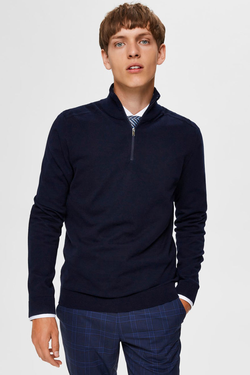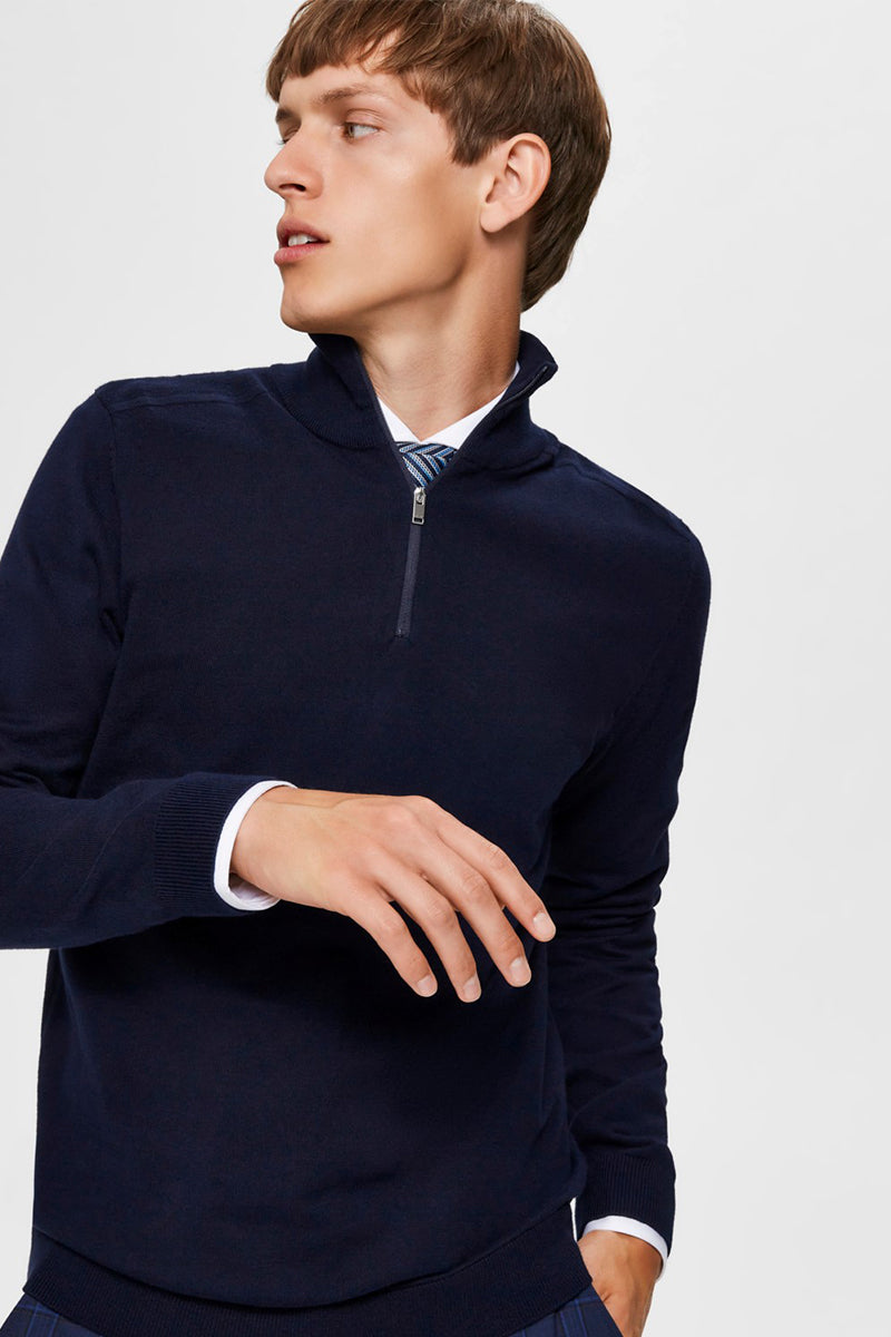 Selected Berg Half Zip Knit Navy Blazer Melange