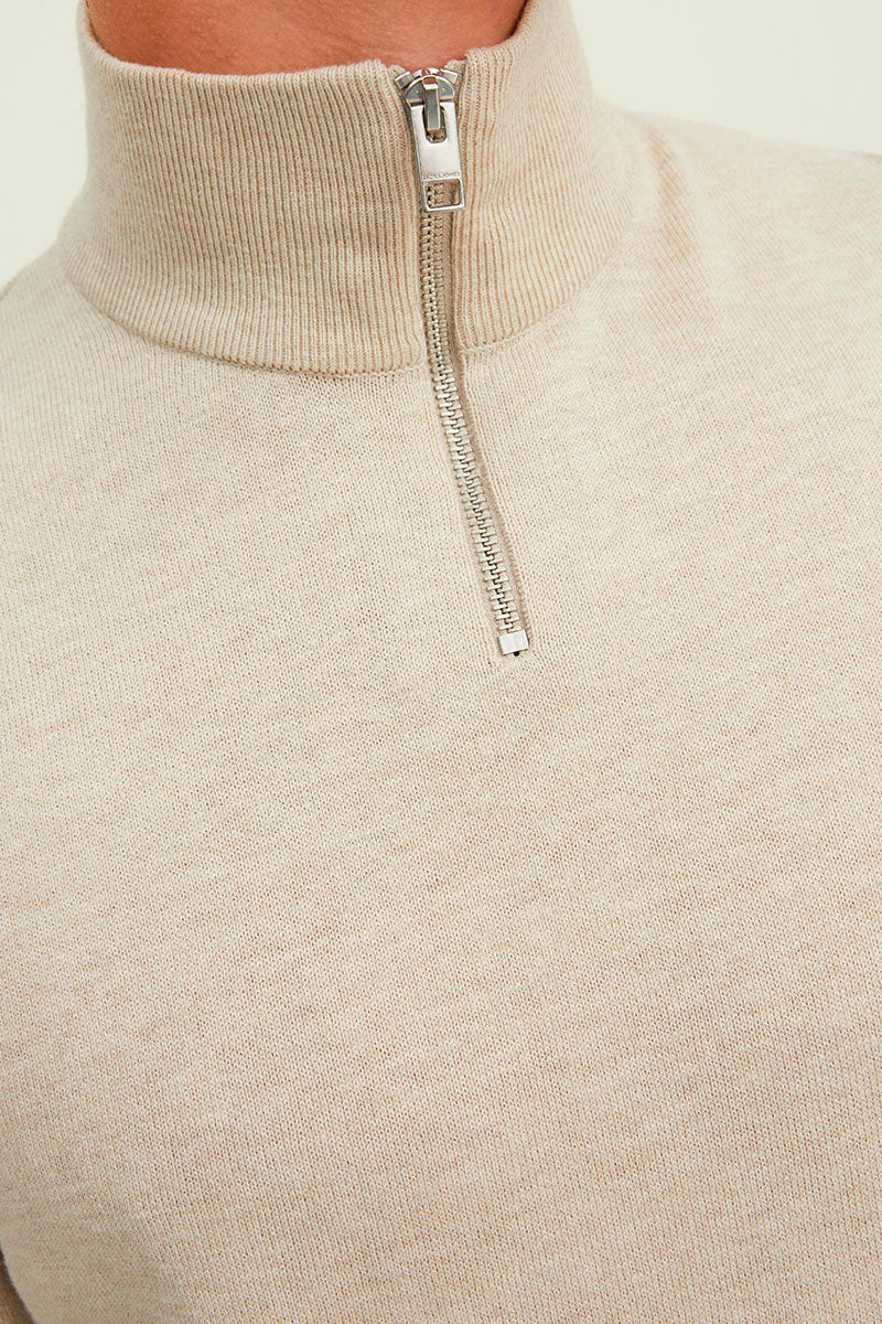 JJEEMIL KNIT HALF ZIP NOOS Oatmeal