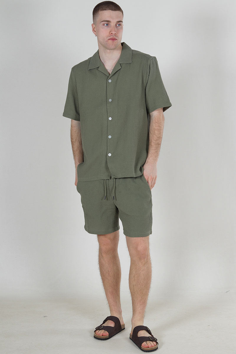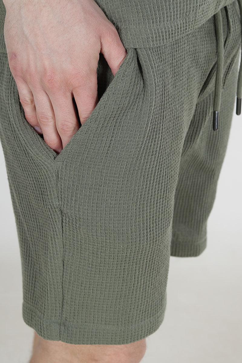 Bertil Waffle Shorts Deep Lichen Green