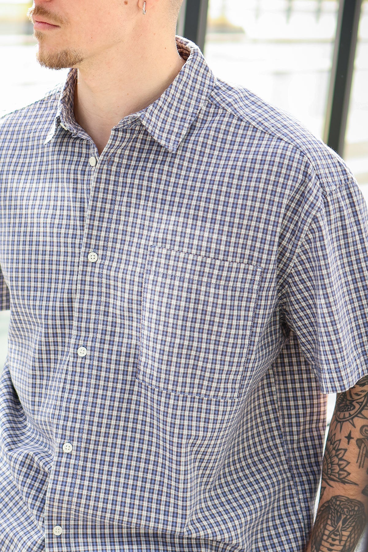 This loose check shirt offers a timeless look that pairs effortlessly with jeans or tailored pants, making it a versatile choice for everyday wear, the office, or special occasions. Its woven fabric is crafted from 100% cotton, combining comfort and breathability with a classic checked pattern. Designed with short sleeves and a shirt collar, it features a button fastening and chest pockets for added functionality.