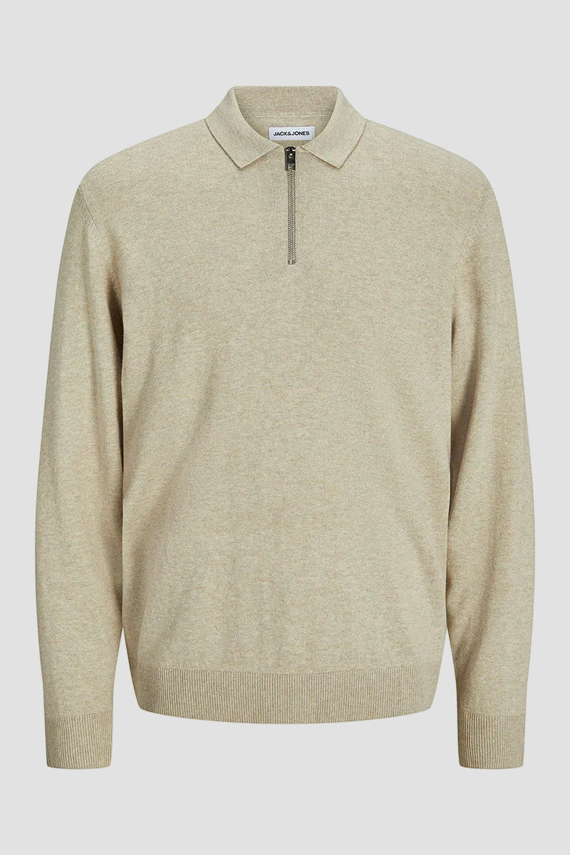 Emil Knit Polo Half Zip LS Oatmeal
