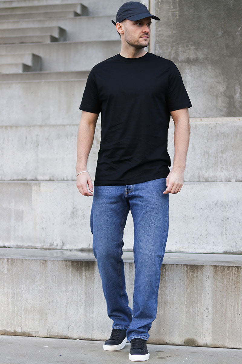 - Relaxed fit jeans.