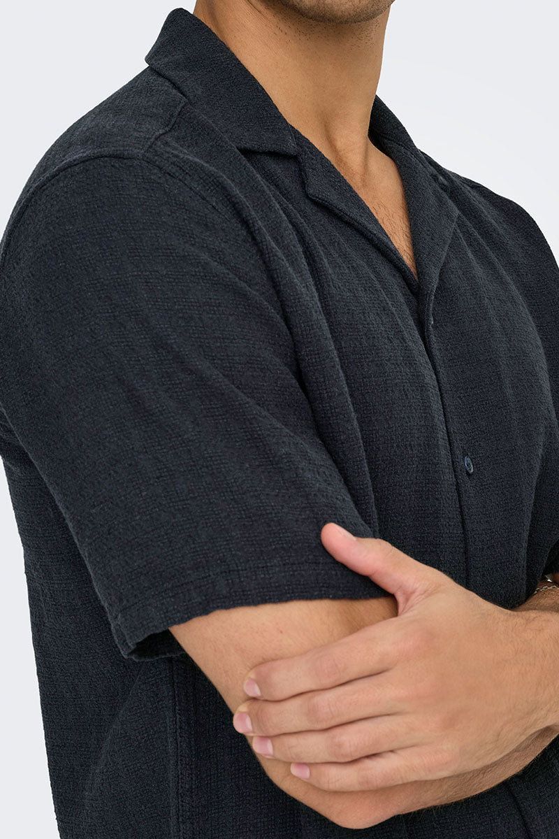 ONLY & SONS Latham Resort Linen Structure Shirt Dark Navy