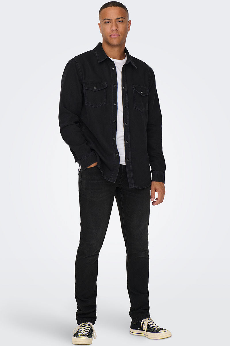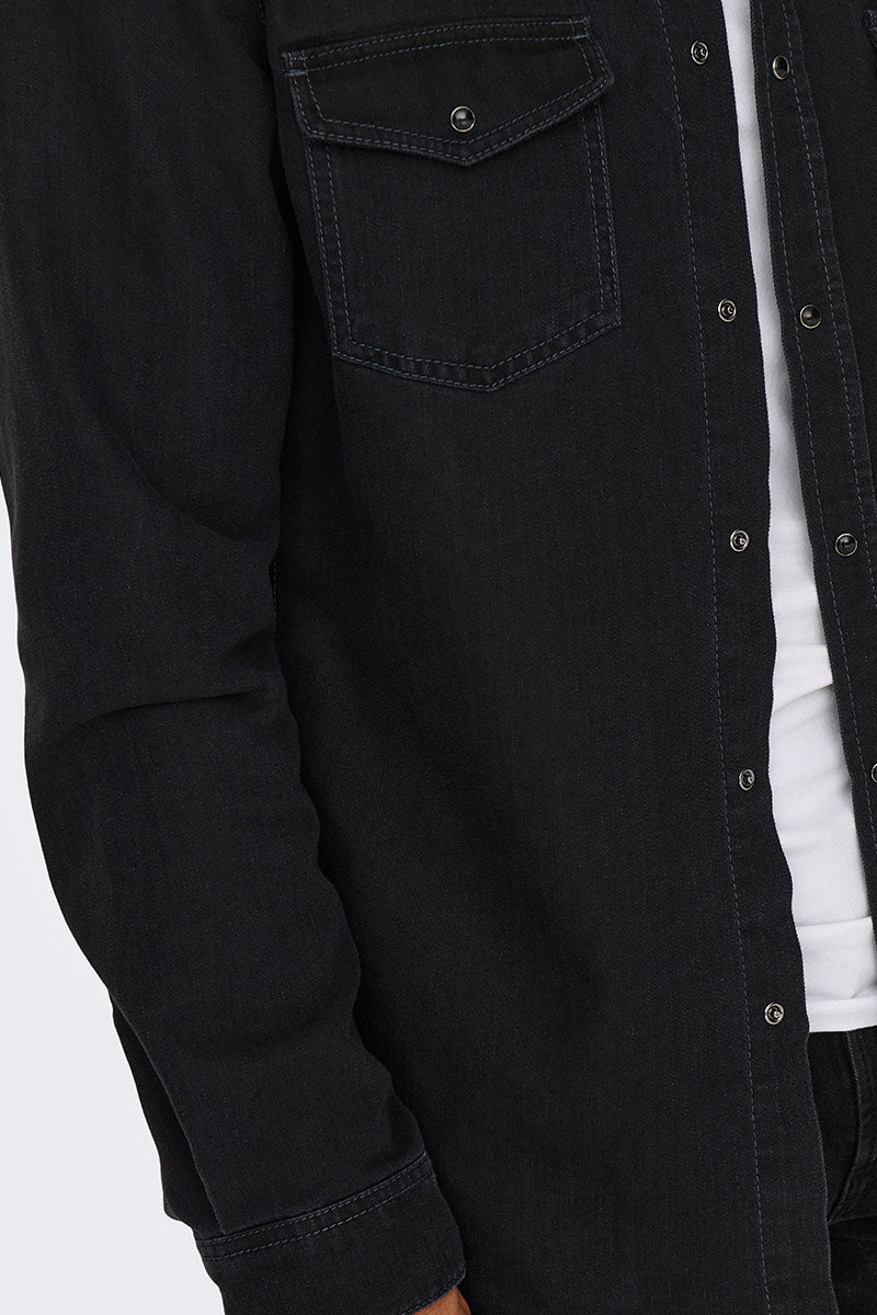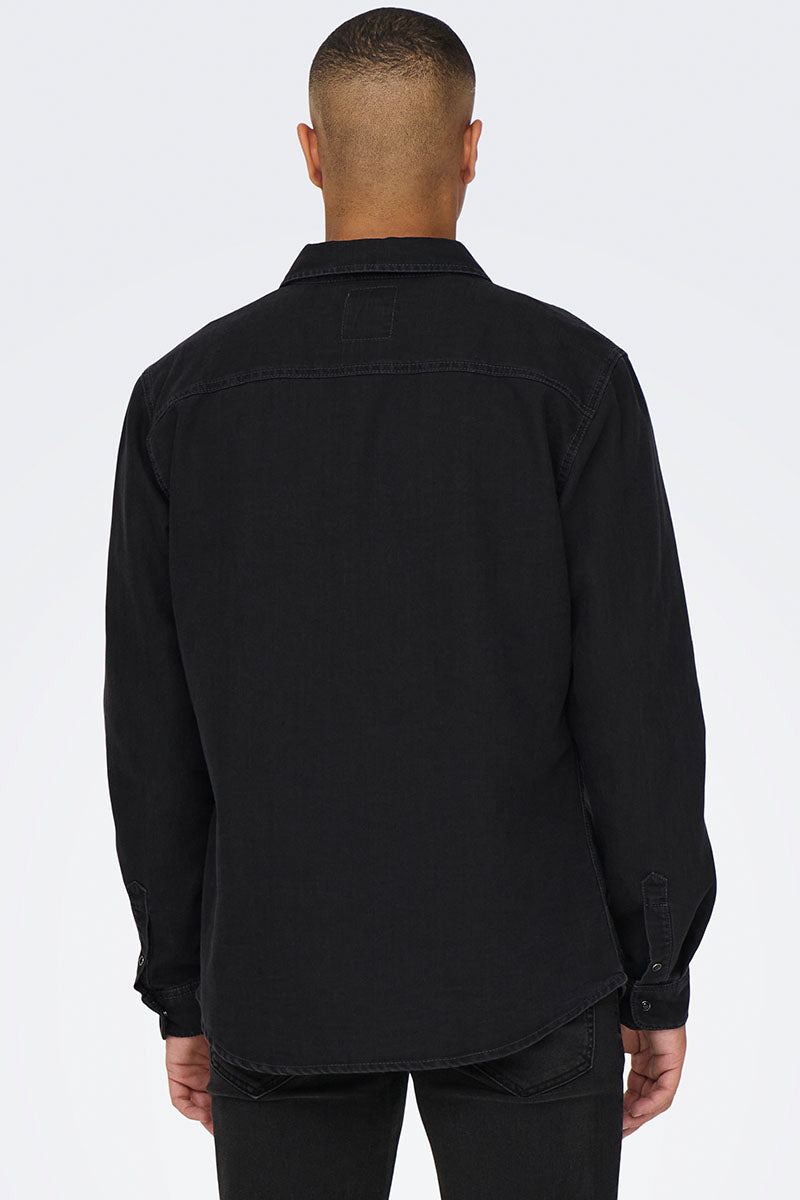 ONLY & SONS Bane Regular Fit Denim Shirt Dark Grey Denim