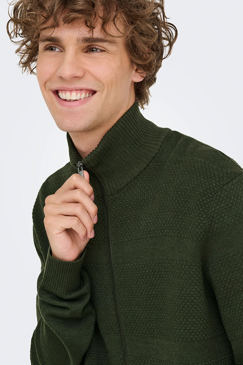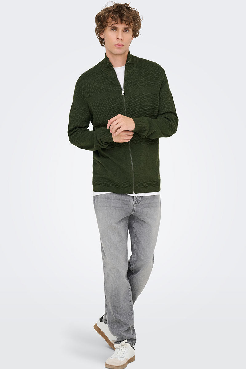 ONLY & SONS Malik Regular Zip Cardigan Knit Olive Night