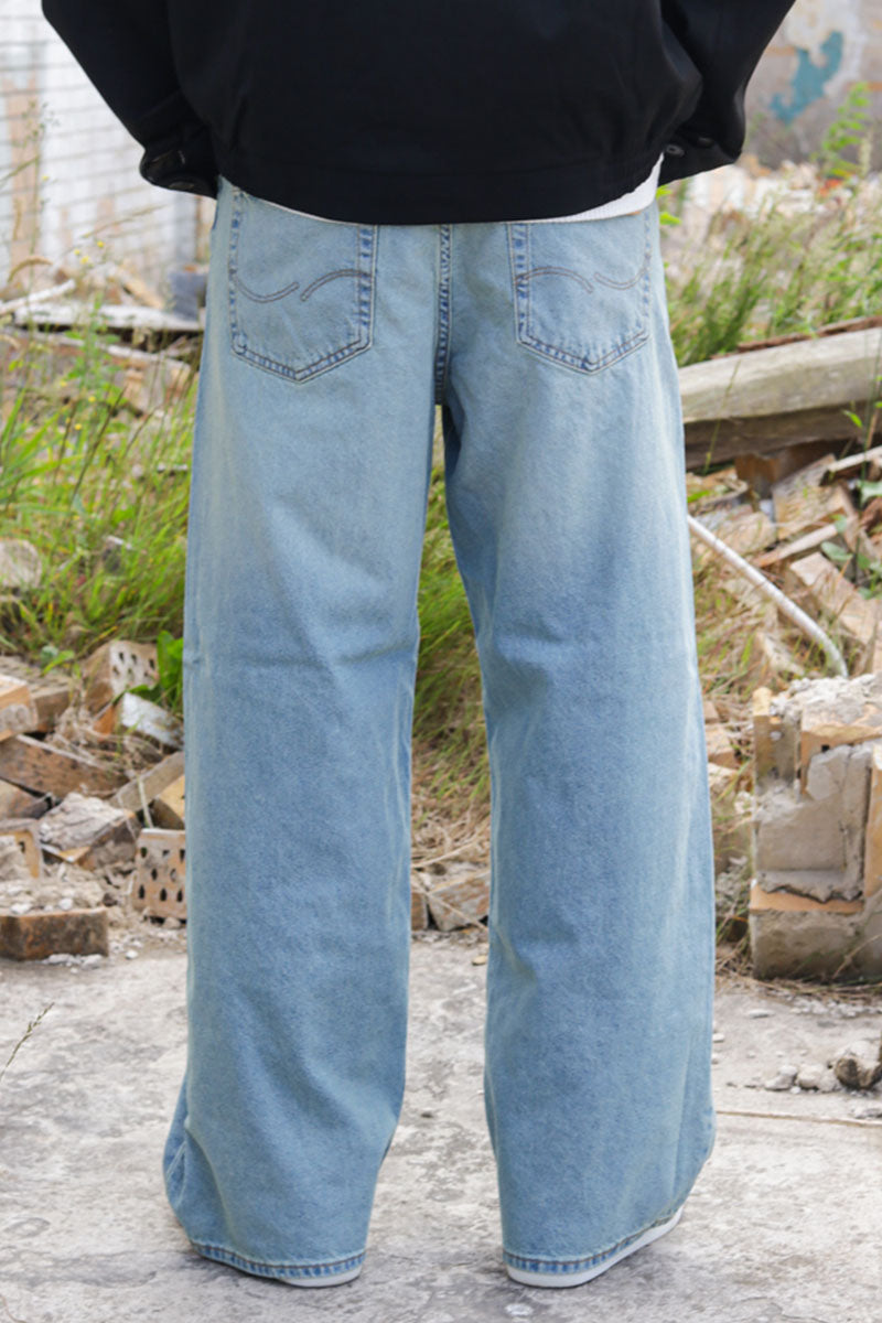- Light‑blue jeans in wide fit
