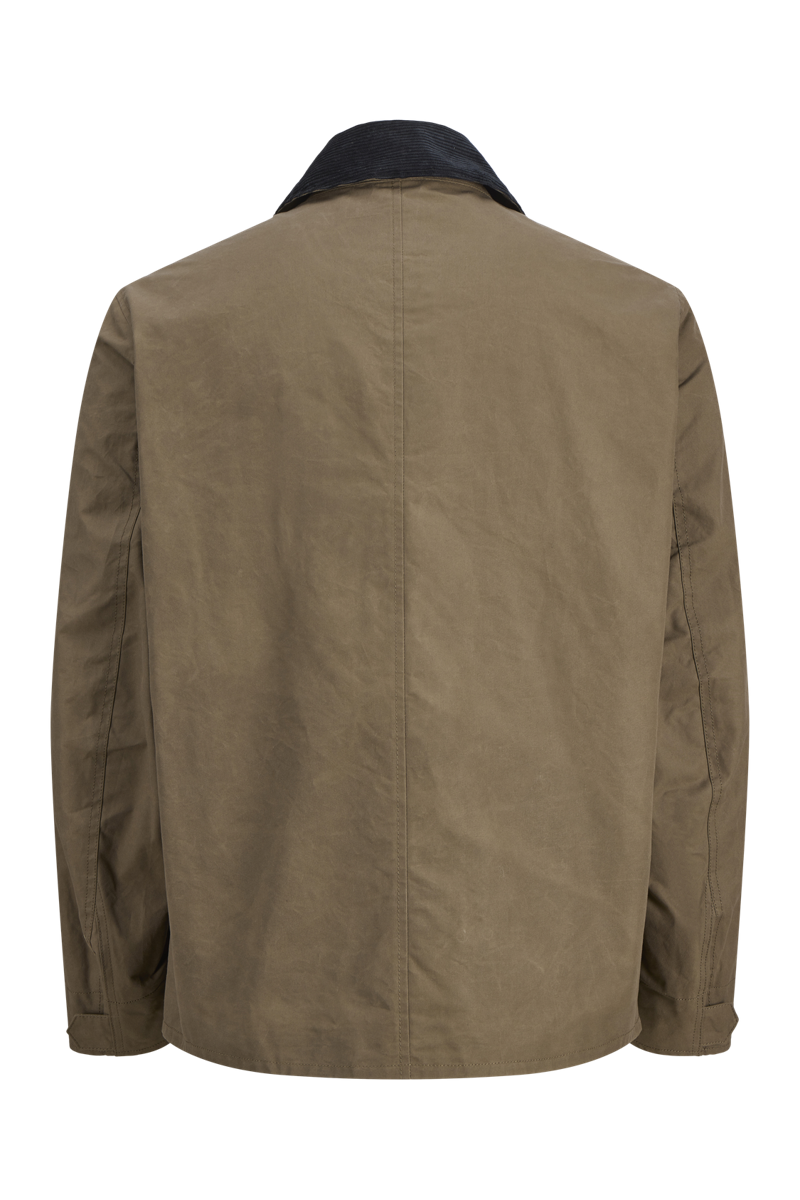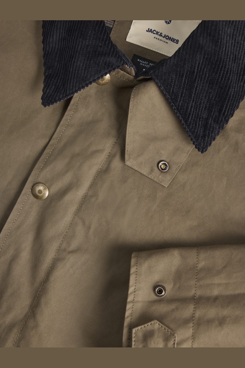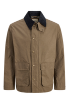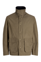 This waxed jacket features a classic spread collar and long sleeves, offering a timeless look suitable for winter wear. Crafted entirely from cotton, it provides a comfortable and durable option for everyday outerwear. The muted canteen color adds a subtle, versatile touch that pairs well with various styles.