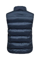 This sleeveless puffer vest features a high neck and zip fastening, perfect for layering in cooler weather. Its dark blue shade, called Night Sky, adds a versatile and stylish touch to casual outfits. The vest is made from 100% recycled polyester, combining sustainable materials with everyday practicality. It includes a polyester lining that ensures a comfortable feel throughout the day.
