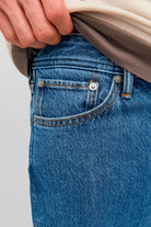Alex jeans come with discreet Jack & Jones embroidery on the back pockets and a classic button closure. The embroidery adds a subtle detail of style to the jeans, while the button closure ensures a secure and timeless fastening. -
