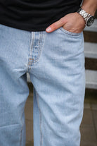 Alex Jeans in the Blue Denim color are a completely classic model of baggy jeans. They have a loose fit and a timeless design that never goes out of style. These jeans are perfect for those who love the relaxed and comfortable style while adding a touch of coolness to your outfit. -