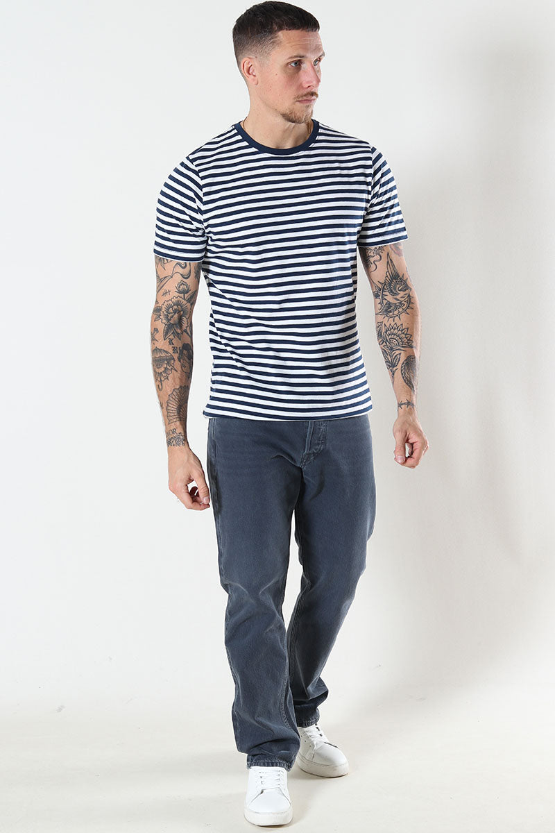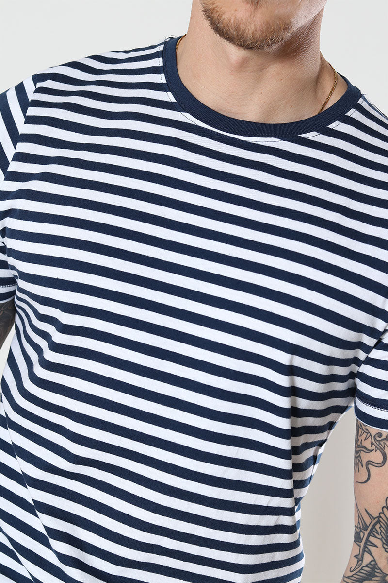 Basic Brand T-shirt Striped Oxford Grey/Heather Blue