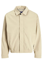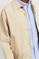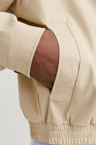 - Short jacket with elastic at the bottom and sleeves, as well as a spread collar