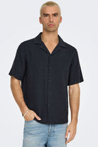 ONLY & SONS Latham Resort Linen Structure Shirt Dark Navy