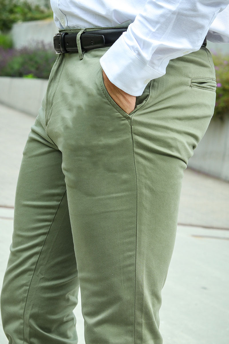 These slim-fit chinos offer a modern, low-rise silhouette crafted from a durable woven fabric that provides strength without stretch. Designed as a smart-casual alternative to jeans, they feature a zip fly fastening and practical front and back pockets, making them a versatile choice for everyday wear. The deep lichen green color adds a subtle, earthy tone perfect for seasonal wardrobes.