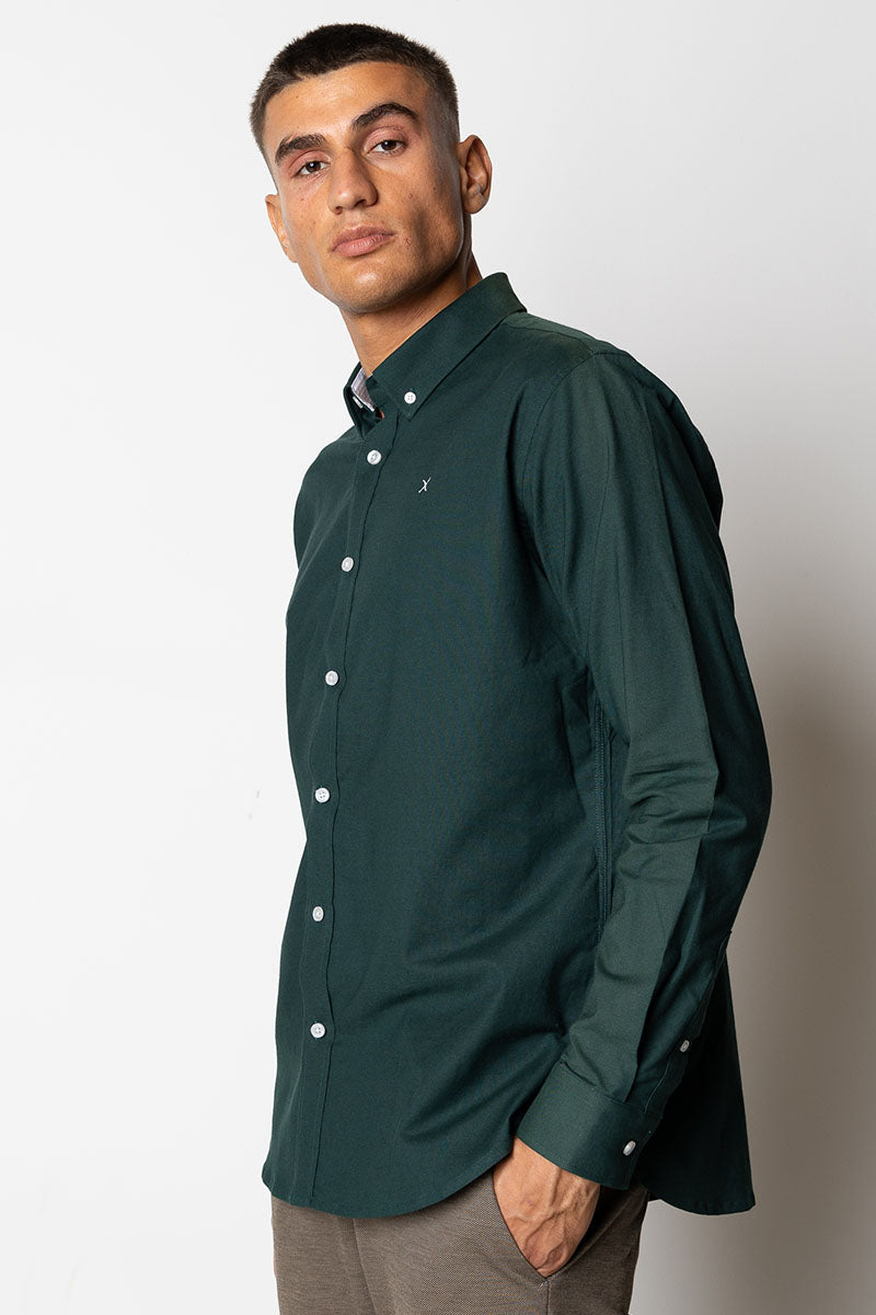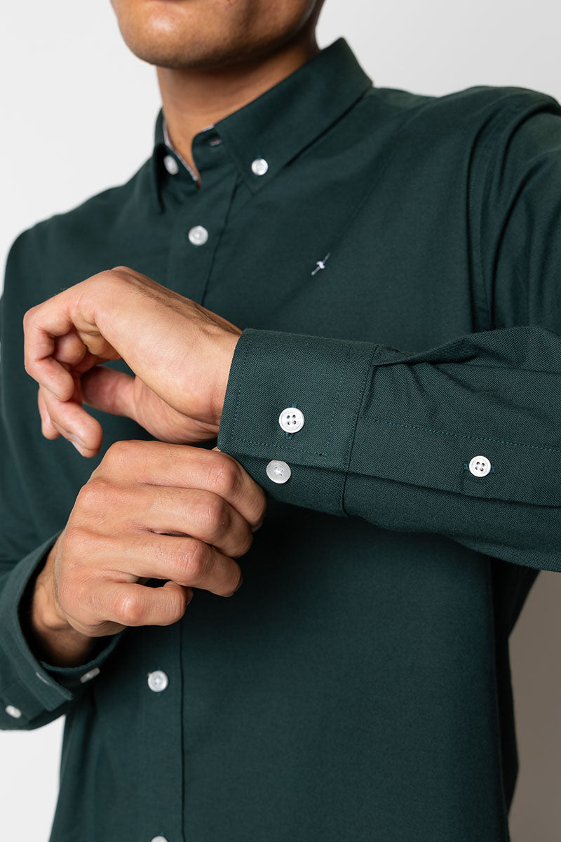 Clean Cut Copenhagen Oxford Stretch Plain L/S Deep Green