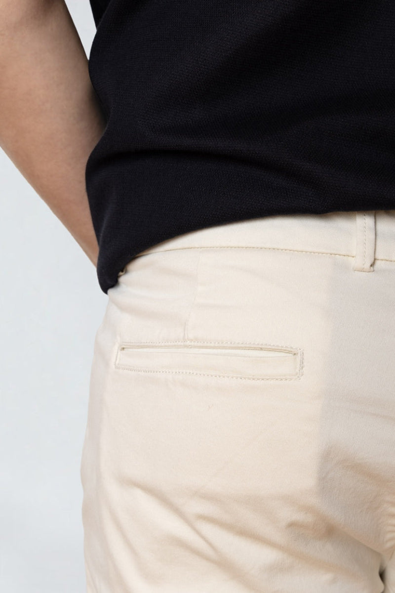 These Mitchell twill shorts offer a comfortable and stylish choice for the warmer months. Made primarily from cotton with a touch of elastane, they provide both breathability and subtle stretch. Their basket weave texture adds a refined detail, making them suitable for casual spring and summer wear.