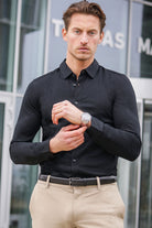 • Classic design: The shirt features a classic collar and button closure that gives a stylish and professional look. The black color also makes the shirt suitable for formal occasions and can be combined with many different outfits.