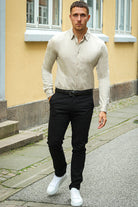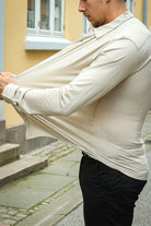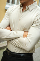 The Comfort Shirt in Silver Linning is a stylish and comfortable slim-fitting shirt that is perfect for any formal or casual occasion. The shirt is designed with a classic collar and button closure, which gives it a sophisticated look. The shirt also has plenty of stretch, ensuring a good fit and comfort. -