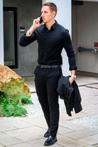 - Classic design: The shirt features a classic collar and button closure that gives a stylish and professional look. The black color also makes the shirt suitable for formal occasions and can be combined with many different outfits.