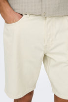 Edge Straight Fit Denim Shorts Ecru