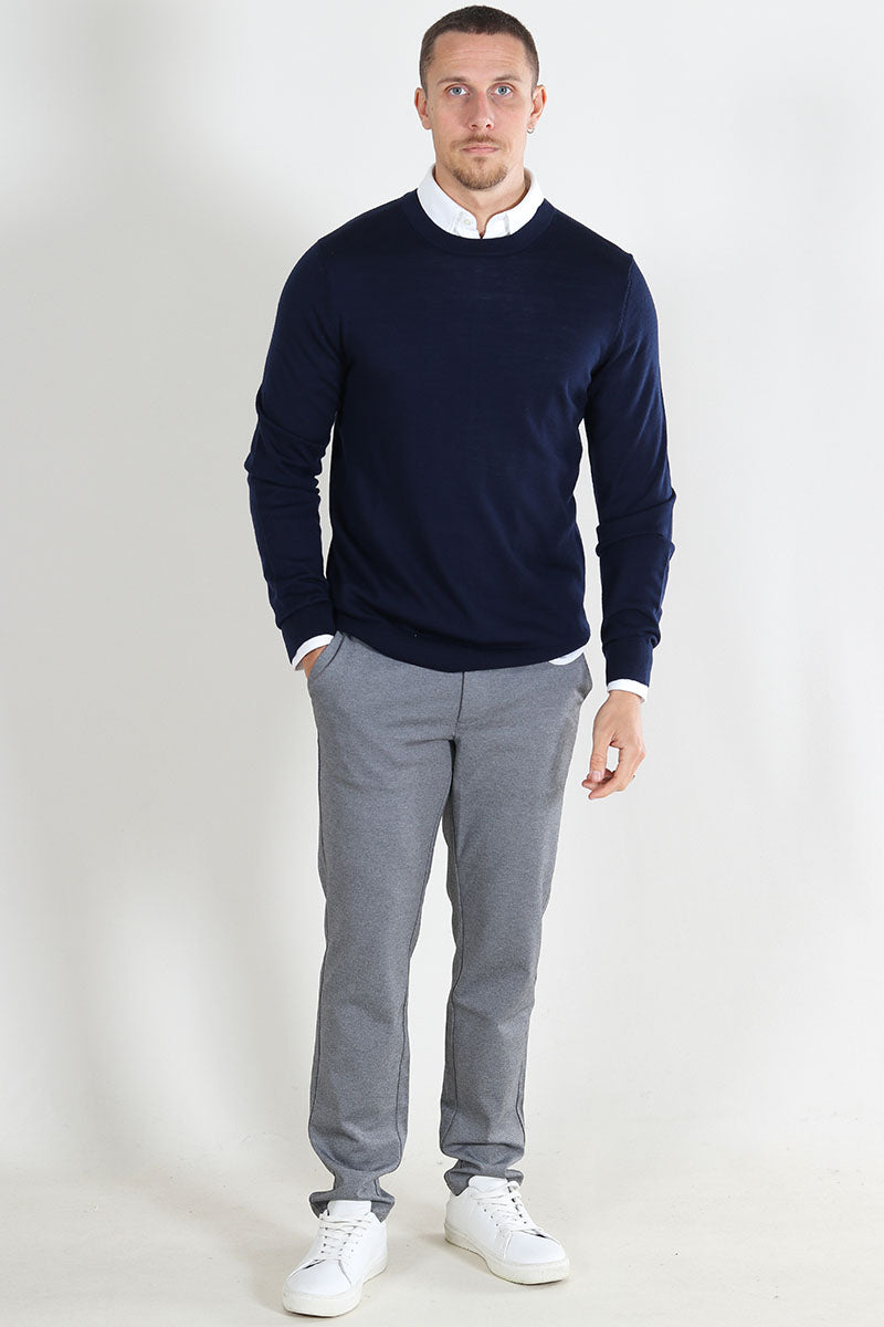 Tray LS Merino Knit Crew Neck Navy Blazer