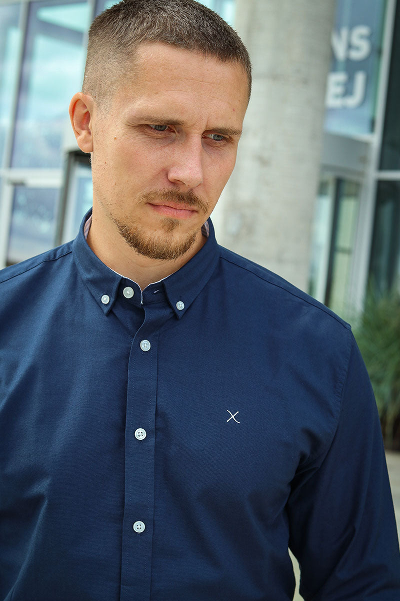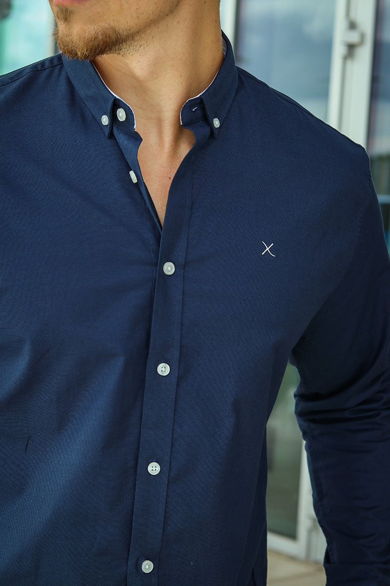 Oxford Stretch Plain L/S Navy