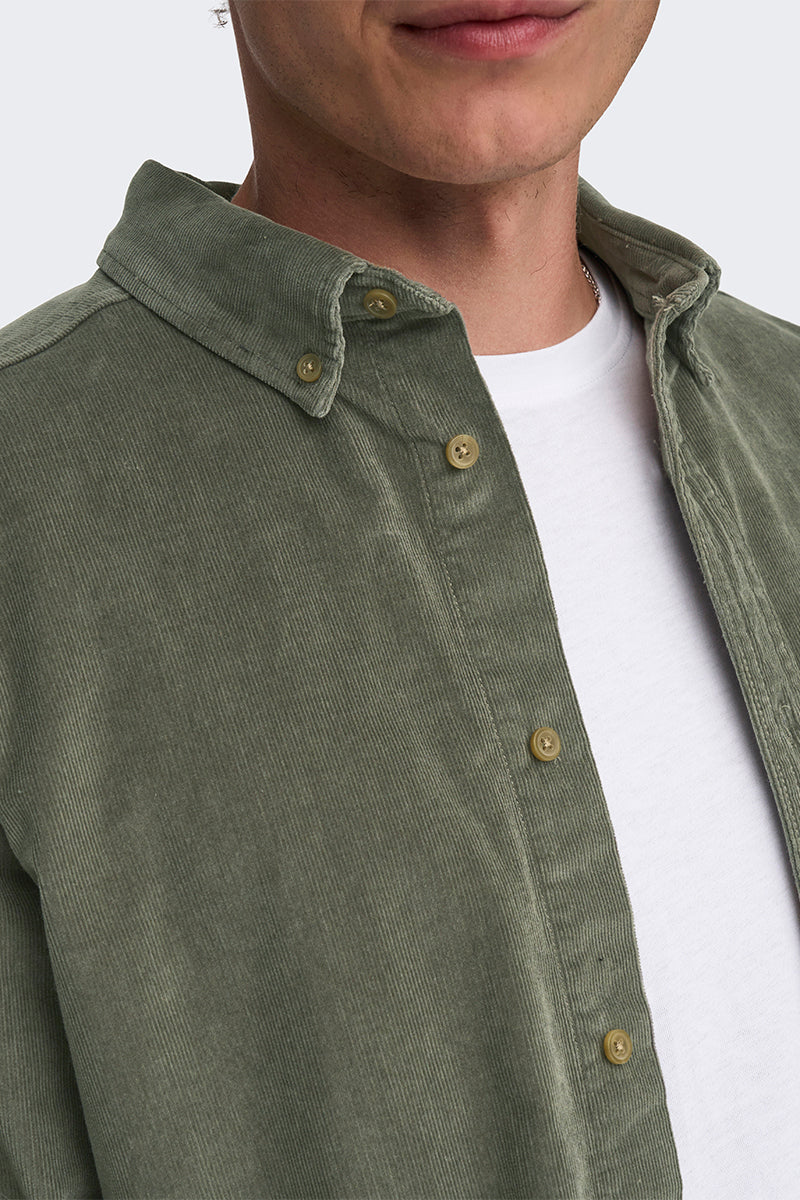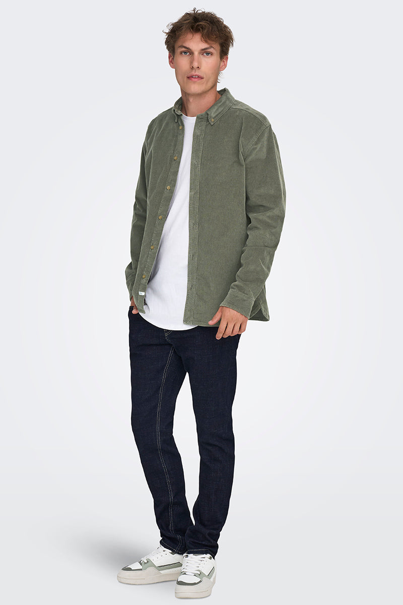 ONLY & SONS Michael Regular Fit Stretch Cord Shirt LS Otter