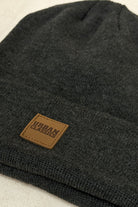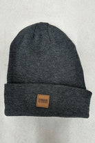 Dark grey Urban Classics knitted beanie, with Urban Classics logo badge on the front. The Badge is in leather. Quality; : 100% Acrylic.