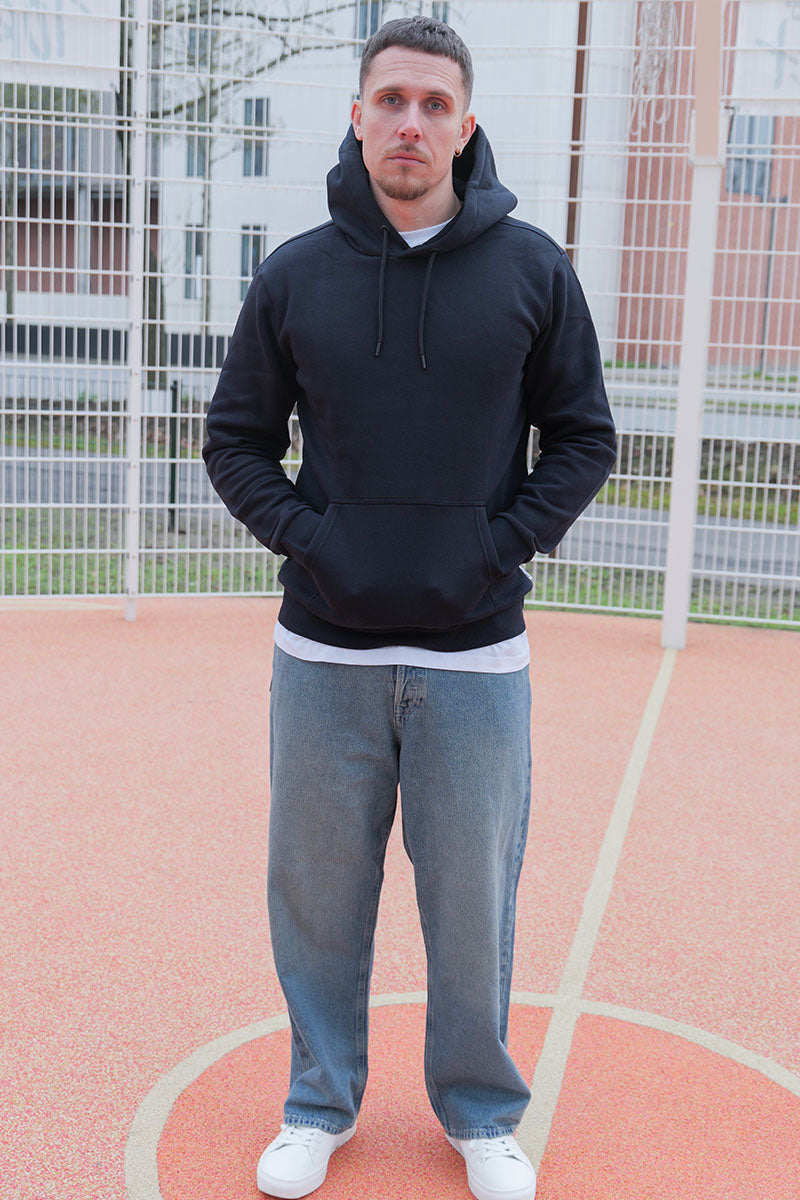 The regular fit is undoubtedly what you're familiar with, allowing you to breathe and wear a T-shirt underneath without it being too loose around the waist. This fit is great if you want a hoodie that you can wear for various occasions and with different pants.