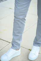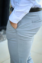 Elevate your closet with a pair of chinos made from a strong and durable woven fabric that offers a smart-casual alternative to jeans. These slim fit, low-rise trousers feature a zip fly fastening and include both front and back pockets, combining style and functionality.