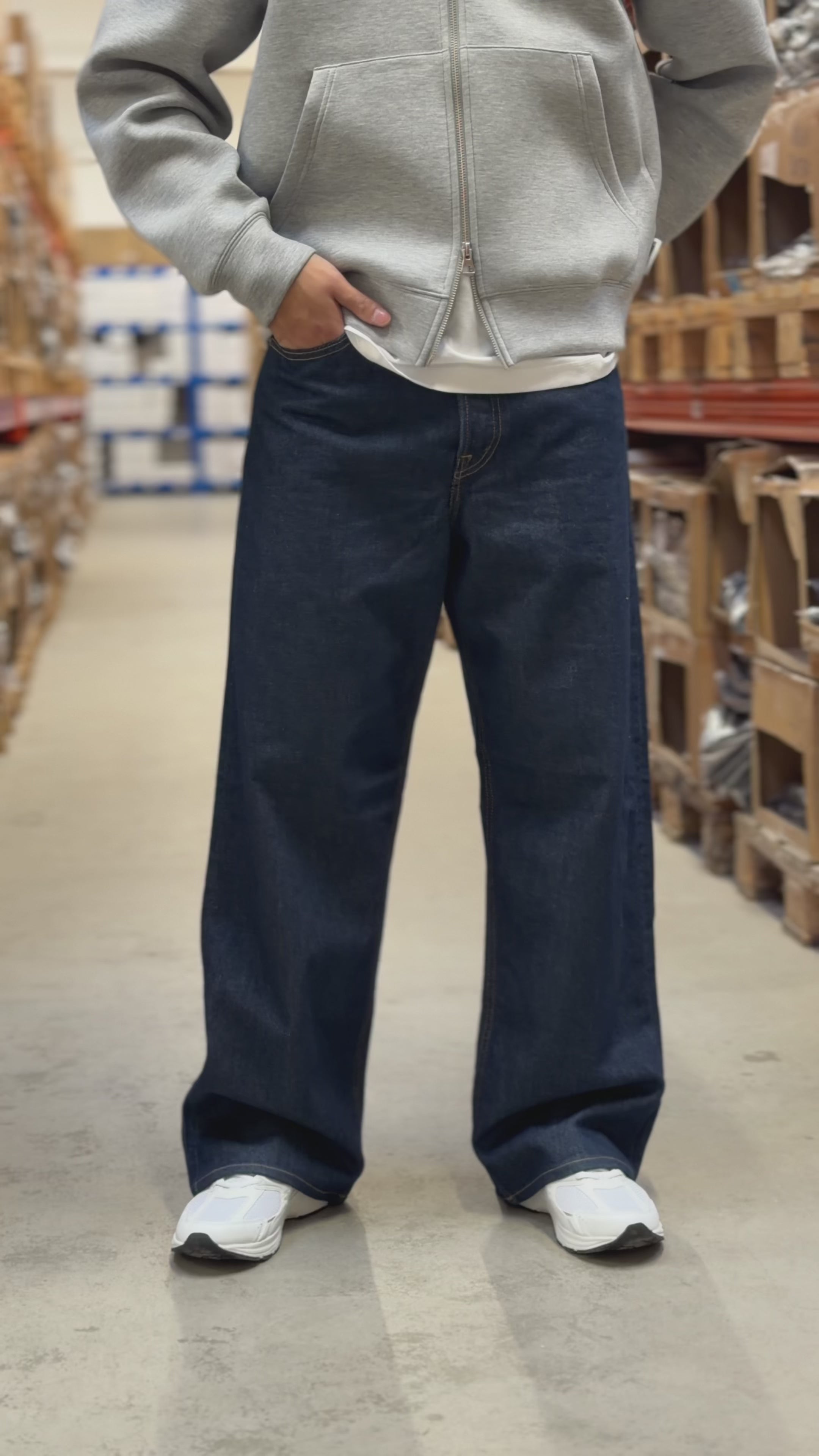 These wide fit jeans offer a comfortable mid rise and feature classic five-pocket detailing that never goes out of style. Made primarily from cotton, the fabric feels soft and breathable, making them a reliable choice for casual wear. The button fly fastening adds to their timeless design. The rinse wash removes excess dye, giving the jeans a soft feel and a clean look. Their silhouette includes a baggy thigh and knee along with a wide leg opening, delivering a relaxed and modern fit.