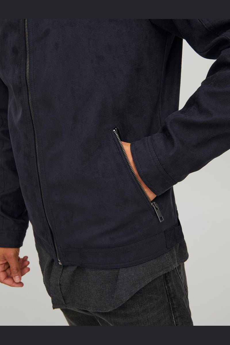 This jacket offers a casual yet refined look perfect for everyday wear. Crafted from durable polyester coated with polyurethane, it mimics the texture of suede while providing easy care and lasting quality. Featuring a classic biker collar and long sleeves, it closes with a zip fastening that complements its sleek design. Practical side and chest pockets with zip closures add to its functionality, while quilted detailing lends a subtle touch of style.