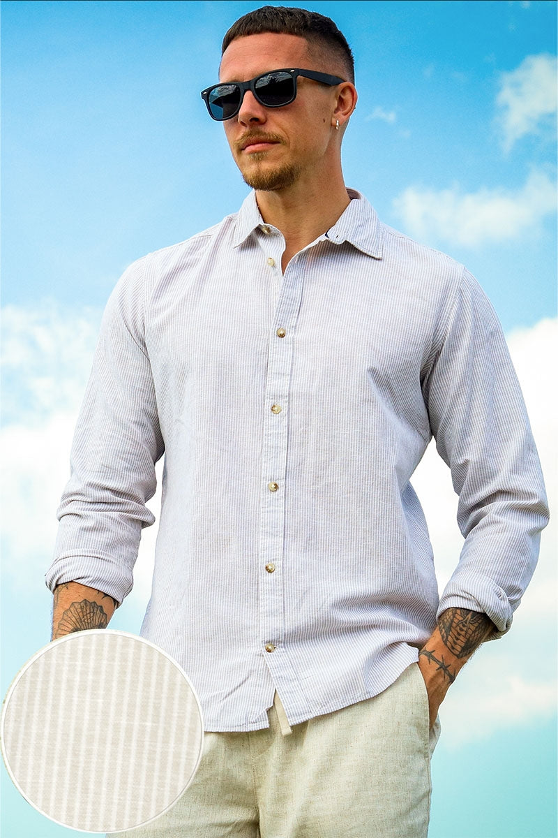 Jack & Jones Summer Shirt LS Oxford Tan Stripe