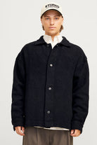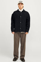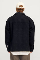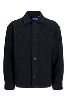 - Black long-sleeve overshirt with a woven pattern in wide fit