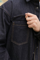 - Denim shirt with button closure.