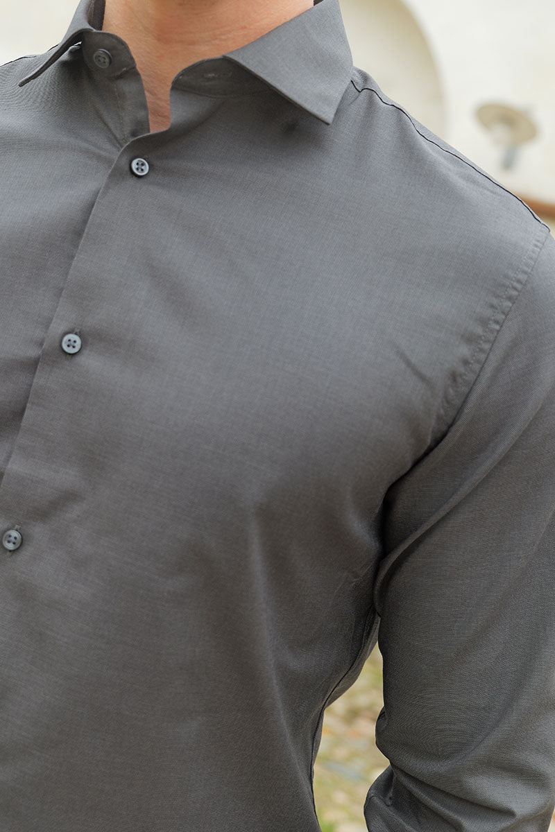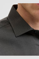 - Dark grey long‑sleeve shirt in slim fit