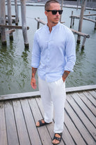 Summer Shirt Linen Blend Band LS Celestial Blue