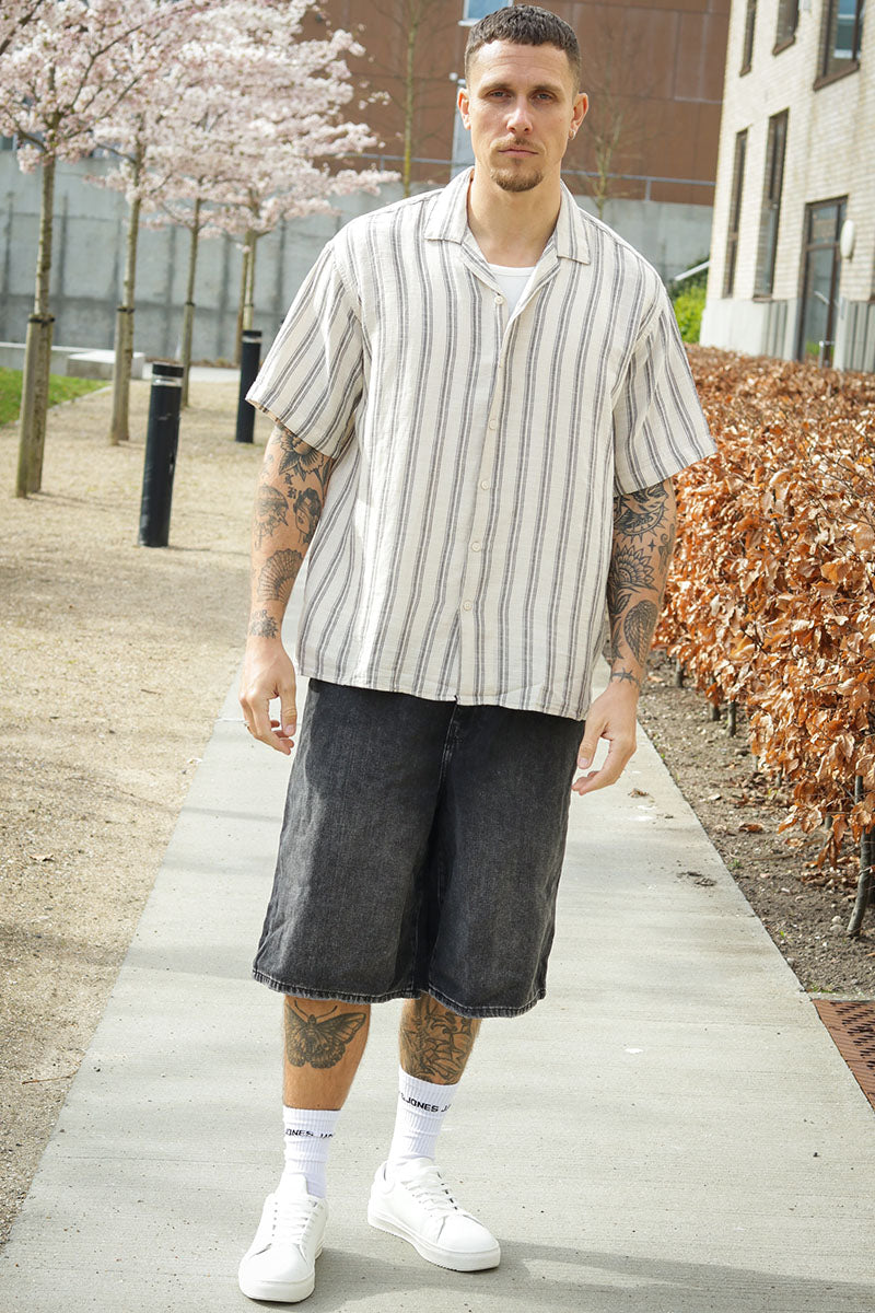 JJESUMMER LINEN BLEND SHIRT LS SN Navy Big Stripe