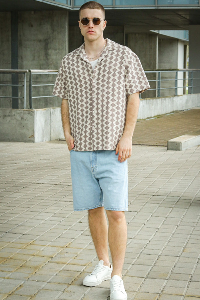 Summer Luke Regular Fit Texture Resort Shirt SS Mocha Meringue