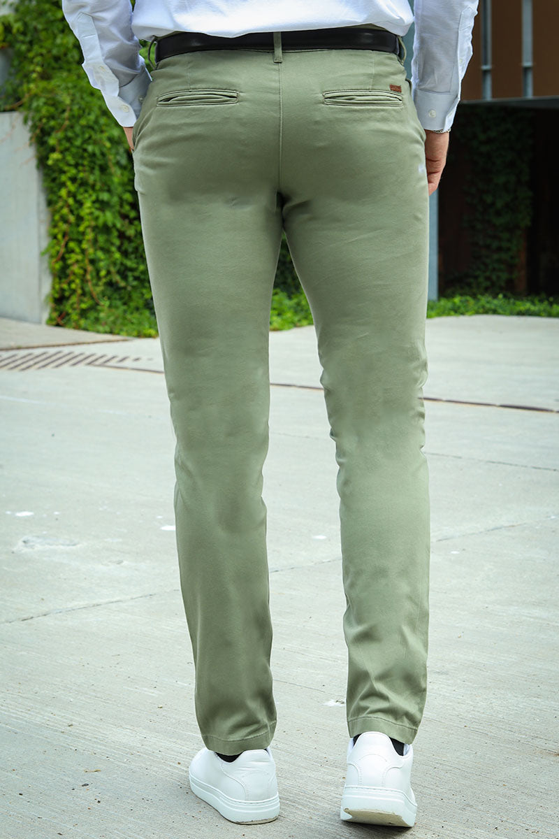 These slim-fit chinos offer a modern, low-rise silhouette crafted from a durable woven fabric that provides strength without stretch. Designed as a smart-casual alternative to jeans, they feature a zip fly fastening and practical front and back pockets, making them a versatile choice for everyday wear. The deep lichen green color adds a subtle, earthy tone perfect for seasonal wardrobes.