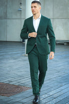 The Comfort Suit in Darkest Spruce color is a unique and elegant suit that stands out from traditional colors. The color is a deep green that gives a sophisticated and stylish look. The suit is suitable for both formal and informal occasions. -