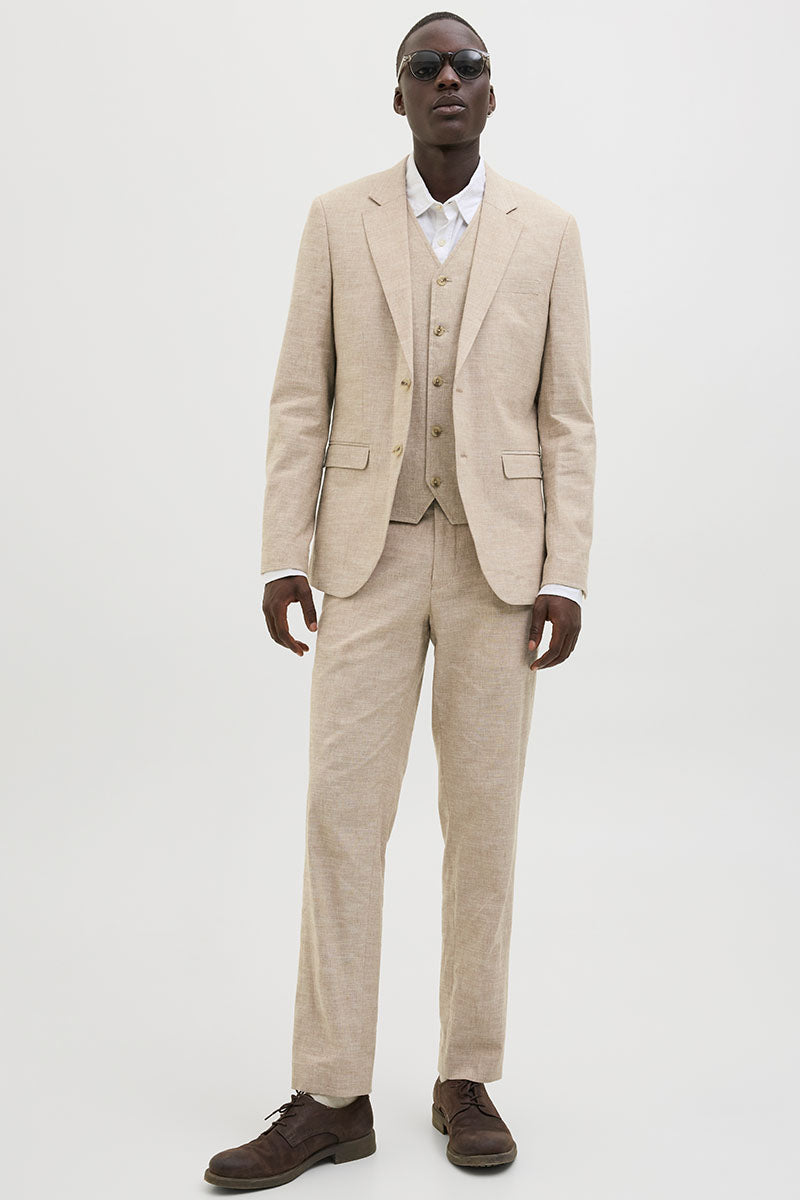 - Beige linen vest in slim fit