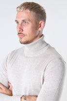This roll neck knit offers a comfortable fit with long sleeves, crafted in a soft blend that combines cotton, viscose, and nylon for flexibility and comfort. The oatmeal melange color adds a subtle, stylish detail to this versatile pullover, making it an excellent addition to any winter wardrobe. Its flat knit construction enhances both comfort and ease of movement, perfect for casual occasions.