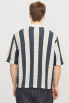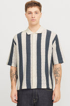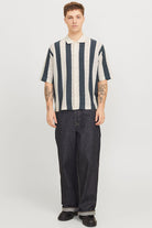 - Features a classic polo collar, buttons, and dropped shoulder seams