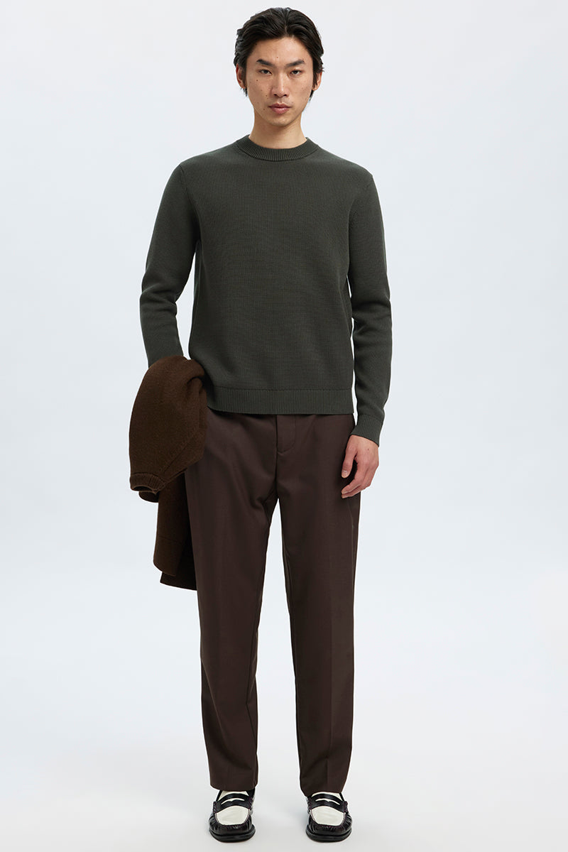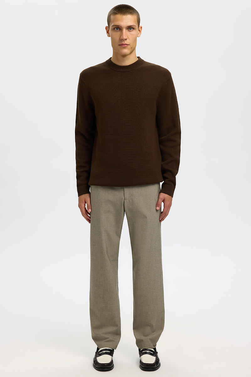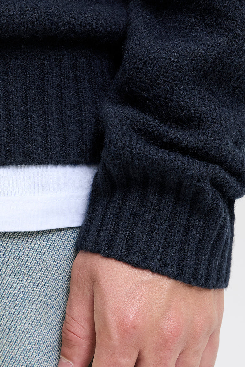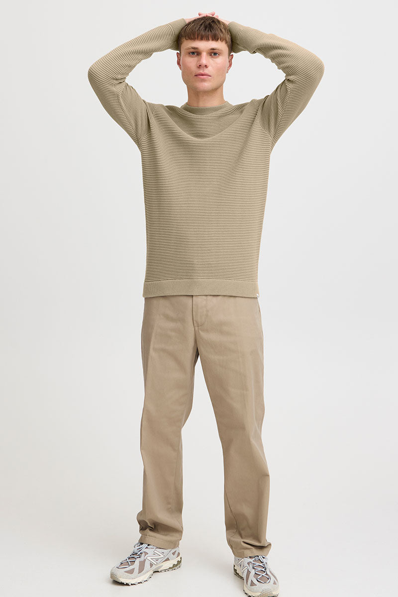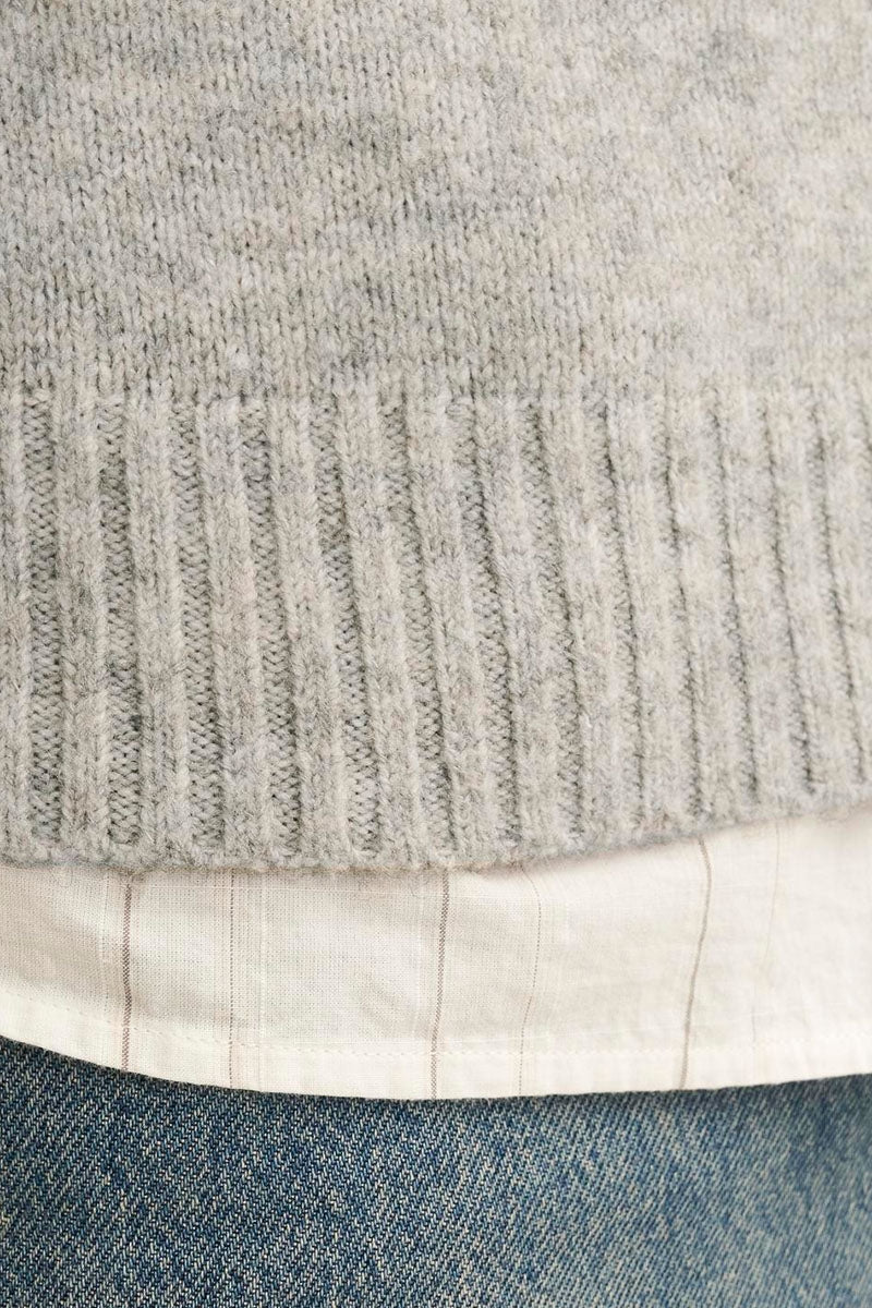 The first, and perhaps the most important knit sweater to mention is the simple, classic pullover sweater with a round neck and long sleeves, which never really goes out of style. It comes in many different colors and shades and is also designed in patterned models, giving it a slightly different expression. At 2trendy, you'll find a wide range of pullovers from well-known brands like Selected, Clean Cut, Jack and Jones, and Kronstadt.