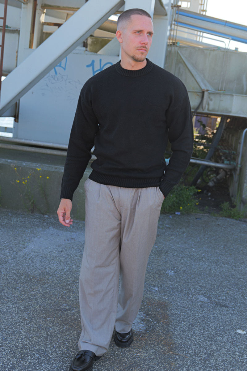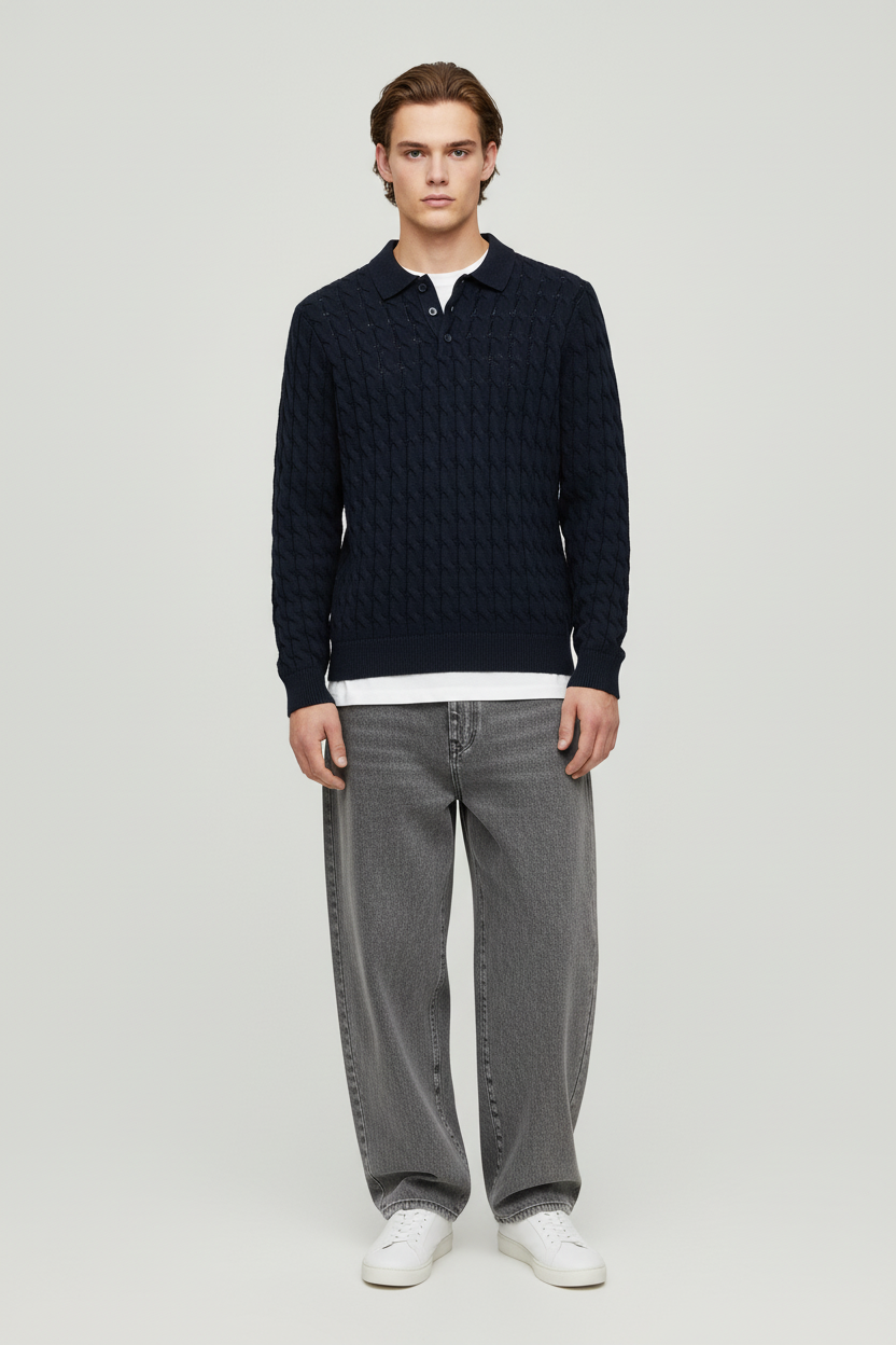 A knit pullover is highly versatile and can be used year-round. It's not too thick for a summer evening, and at the same time, it can easily serve as the top layer in winter when you need more warmth. A pullover can be super practical over a t-shirt, which, paired with a pair of jeans, gives it a very casual look. It can also be part of a more formal outfit with a shirt underneath—this is where the sweater truly shines with the shirt's collar and sleeves adding an edge to the outfit. Paired with a pair of chinos and loafers, the style becomes complete and can be worn for a business meeting or a family gathering. You can still maintain the casual look with a shirt underneath by, for example, adding a leather jacket and a pair of distressed jeans.