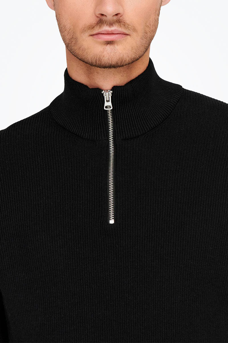 ONLY & SONS PHIL COTTON HALF ZIP KNIT Black