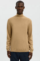 Selected Tray LS Merino Knit Roll Neck Oatmeal