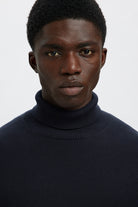 Selected Dane LS Structure Knit Roll Neck Sky Captain
