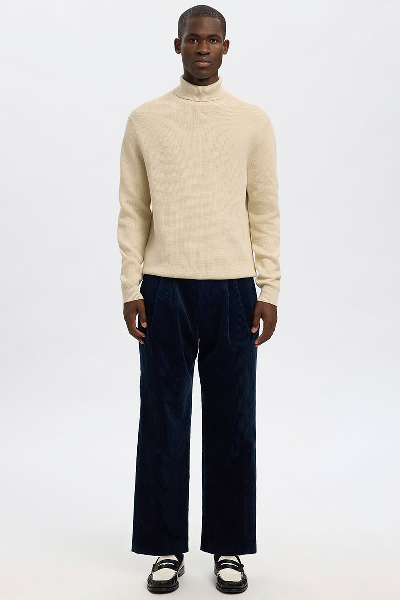Selected Dane LS Structure Knit Roll Neck Oatmeal